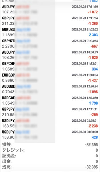 - 2026年1月:-32,395円